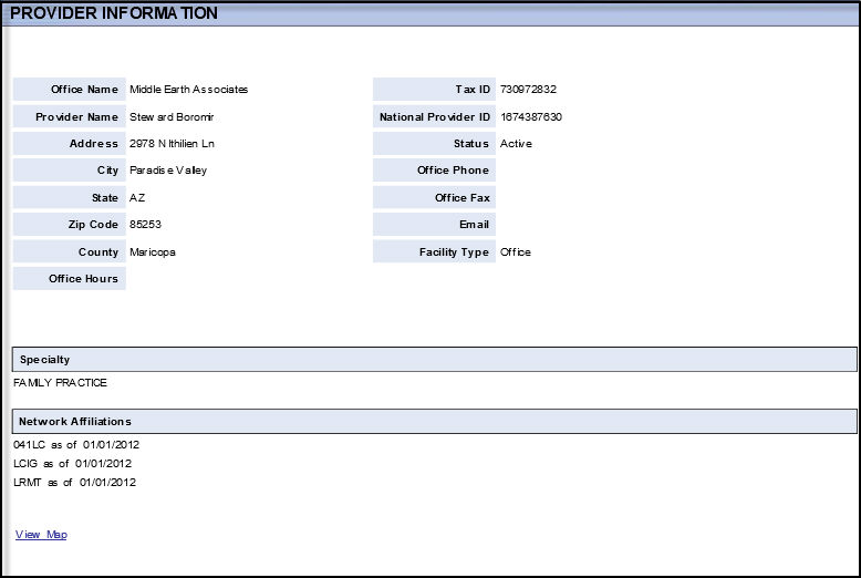 Note: You may see the View Map link on a Provider Information page. Clicking on this link will bring up a map of the location through MapQuest. You will not see this link if the address information is insufficient. We also cannot guarantee that MapQuest will be able to produce a map.